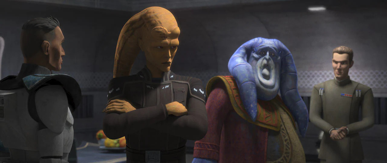 | Beschreibung: | Hauptmann Howzer, General Cham Syndulla, Senator Orn Free Taa und Vizeadmiral Edmon Rampart auf Ryloth |