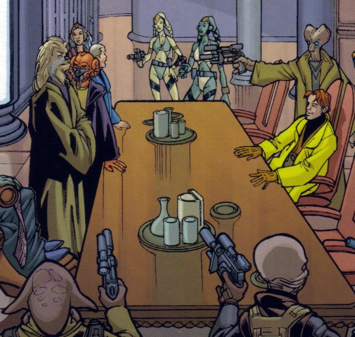 | Beschreibung: | Gipfeltreffen auf Troiken zwischen Tyvokka und Plo Koon (links) sowie Iaco Stark (rechts). |