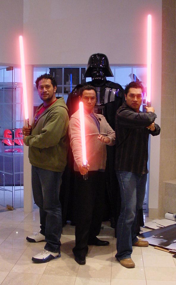 | Beschreibung: | Foto aus "The Tem Show", Spezial-Star Wars-Ausgabe, der Talkshow von Temuera Morrison; Mitte: Tem Morrison, links: Jay Laga'aia, ebenfalls ein Star Wars-Schauspieler |