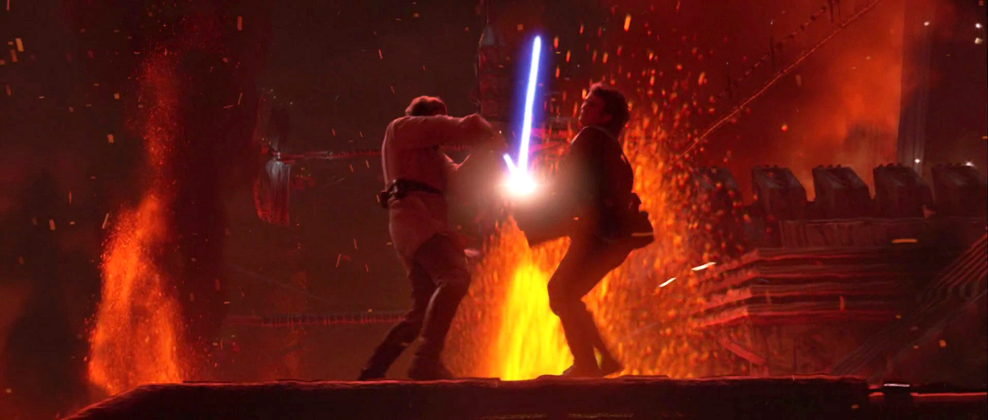 | Beschreibung: | Darth Vader und Obi-Wan Kenobi während eines Lichtschwertkampfes auf Mustafar. |
