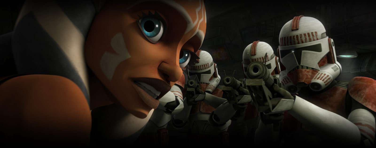 | Beschreibung: | Ahsoka Tano wird auf ihrer Flucht in die Unterwelt von Klonkriegern gestellt; Titelbild der Episode Das verlorene Kind |